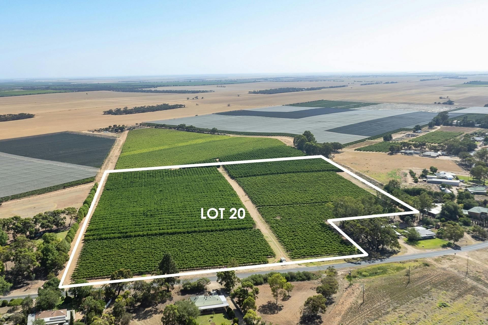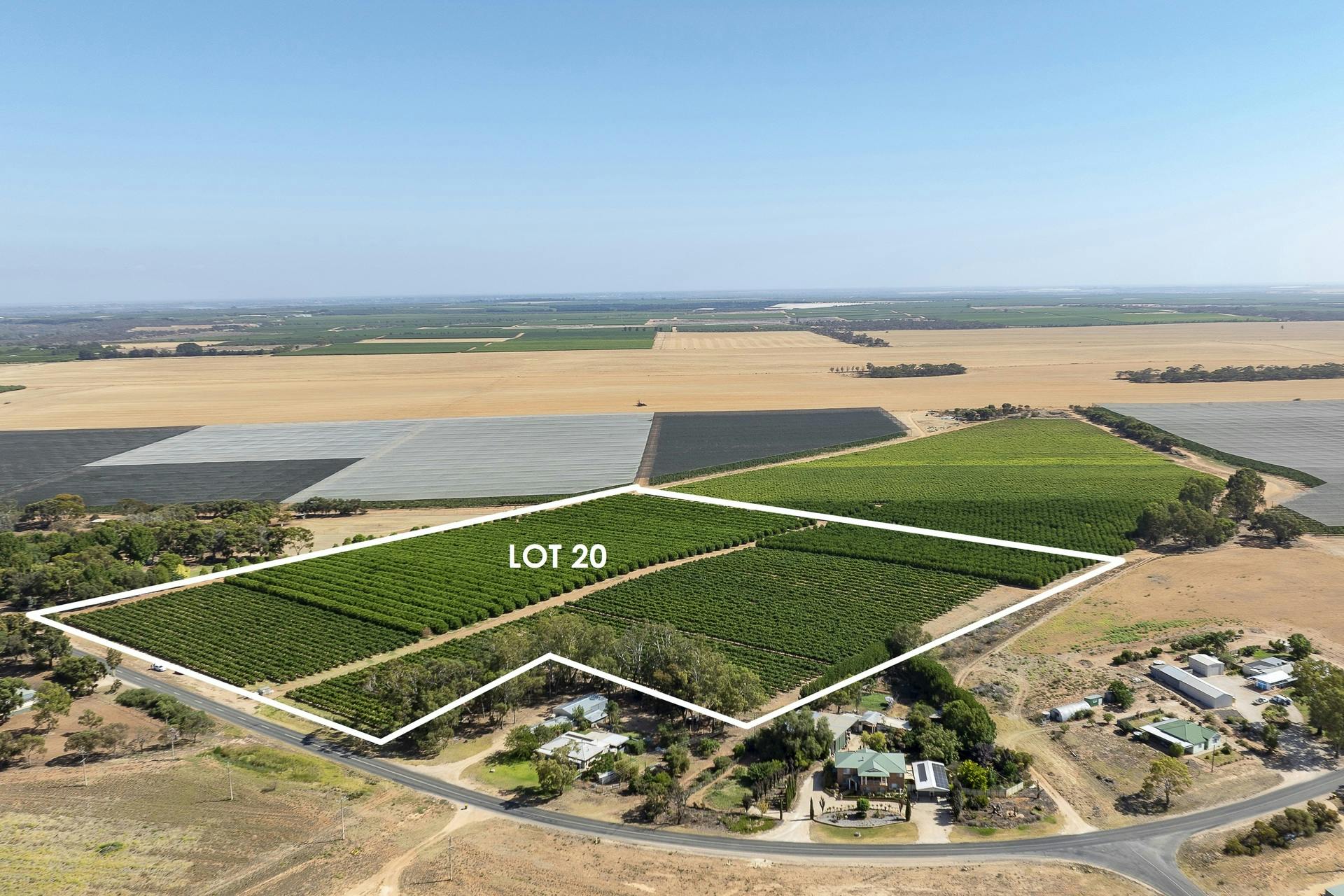 Lot 19 provides a rural type of allotment which has previously been utilised growing wine grapes and citrus. The allotment would be ideal to create a lifestyle home amongst a rural setting. Plantings include Chenin Blanc 9.7 acres – Shiraz 9.68 acres and 1.3 acres Afourer.